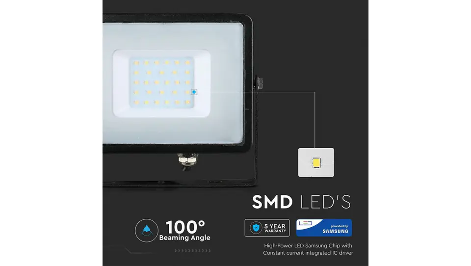 V-TAC Floodlight LED 30 W 6400K 2400lm Black