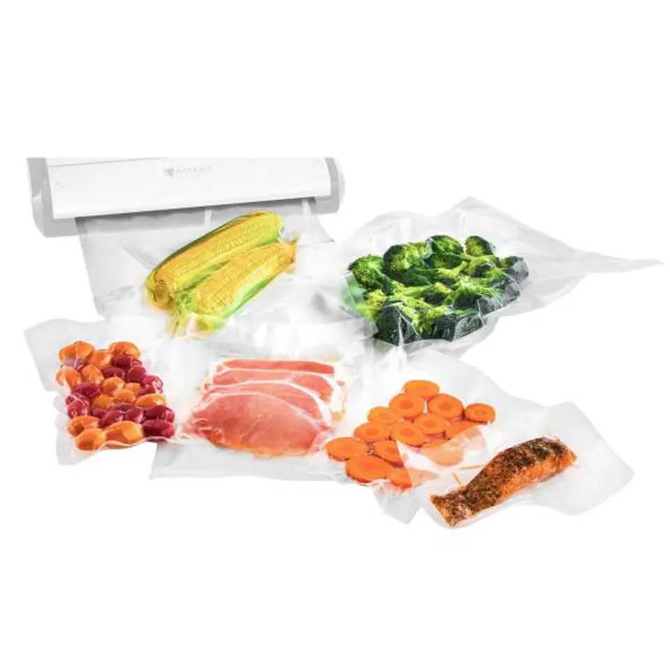 A set of knurled vacuum bags in rolls (4 pcs.) with a width of 30 cm is suitable for working with strip and chamber packaging machines. Long sleeves (600 cm each) can be cut anywhere, so as to easily adjust the size of the bags to the packaged product. The special structure of the point channels means that the air is removed faster than other solutions of this type. Thanks to this, the bags will be used when packing food, liquids, medicines, and even documents, jewelry or electronics.