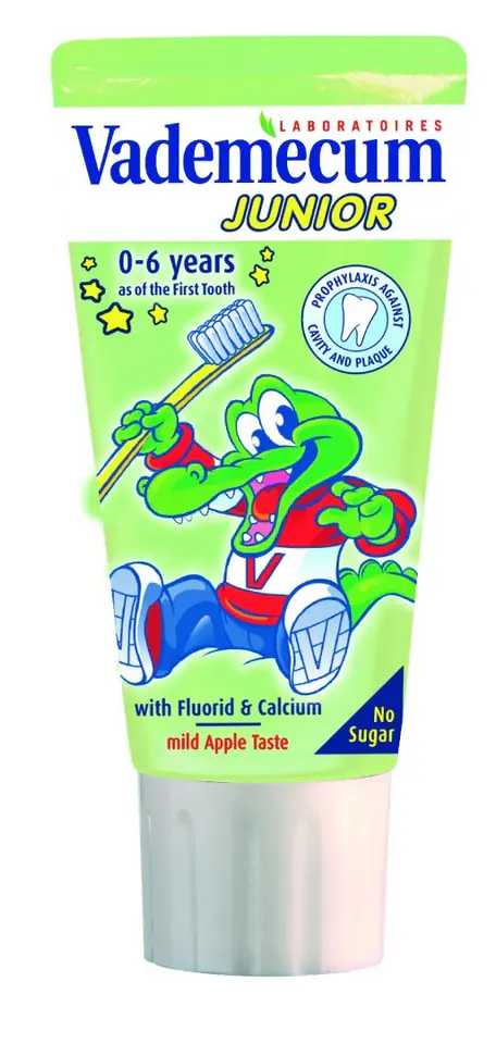 Vademecum Junior is a toothpaste for children (3-6 years), which strengthens enamel thanks to the right amount of fluoride and calcium, adapted to the needs of active protection of milk teeth. Great taste will make brushing your teeth a pleasure for children. The paste does not contain sugar.