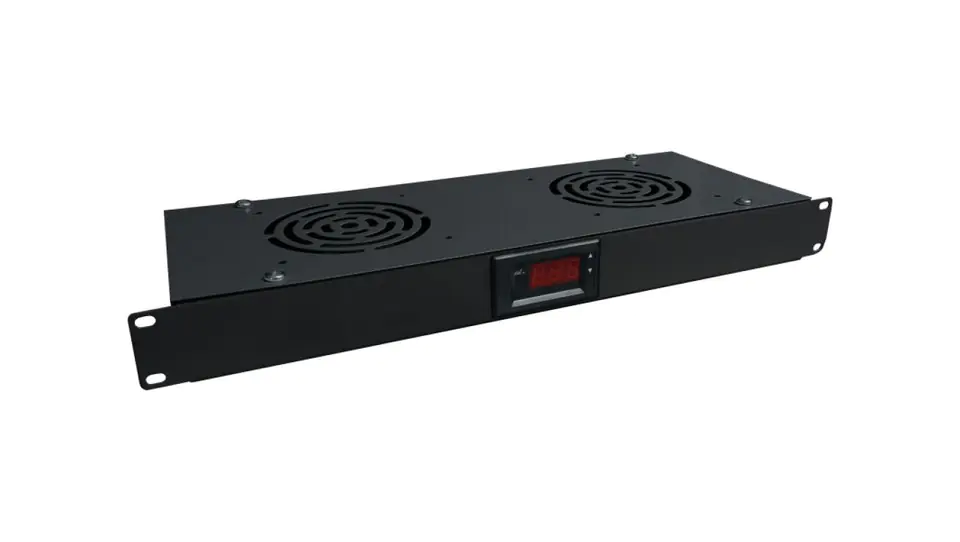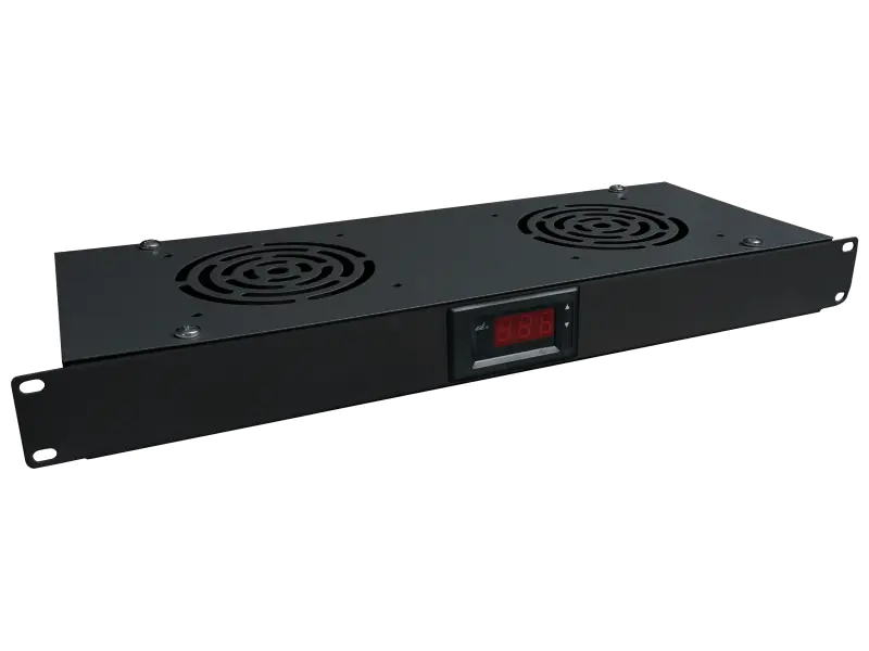 Ventilation panel designed for installation in rack cabinets in the 19-inch standard. The panel is equipped with a thermostat and a digital temperature control module. The temperature sensor with a cable length of up to 1.5 m allows you to place the sensor anywhere in the cabinet.