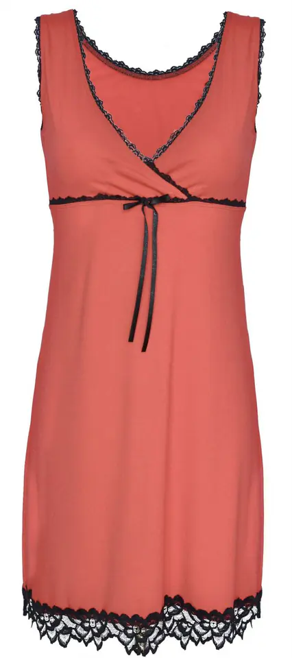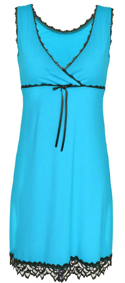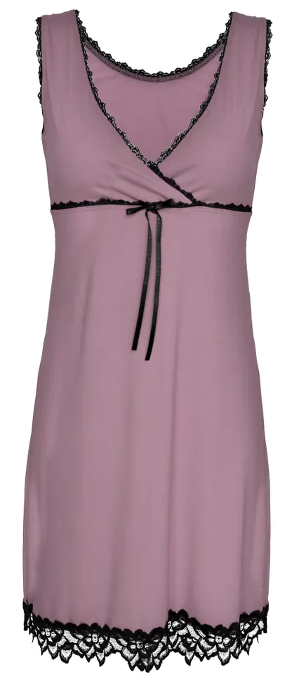 Elegancka, gładka koszulka nocna na szerszych ramiączkach. Miseczki miękkie, profilowane, ładnie zdobią dekolt. Pod biustem satynowa, ozdobna kokardka. Uda obszyte atrakcyjną lamówką. Skład: 92% wiskoza, 8% elastan.