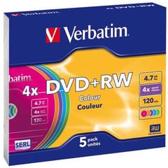 VERBATIM DVD+RW 4,7GB 4X COLOUR SLIM CASE*5 43297