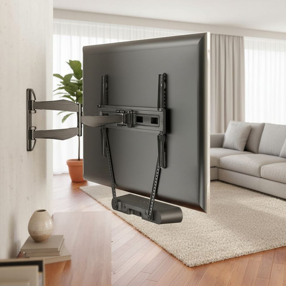 High-quality Sonos Ray speaker mount, with the ability to be mounted to a TV or to a TV bracket. Mounting the soundbar directly under the TV allows you to get better sound compared to the TV's built-in speakers. This allows you to enjoy a more immersive and clear sound when watching movies, listening to music or playing games. The mount is designed to fit most TVs on the market. It is a flexible solution that allows you to mount your soundbar to both LED, OLED and other types of TVs. The adjustable arms allow you to adjust the hanger to fit different mounting hole spacing on your TV or TV mount. The mount comes with all the necessary mounting hardware and detailed instructions, making installation quick and easy.