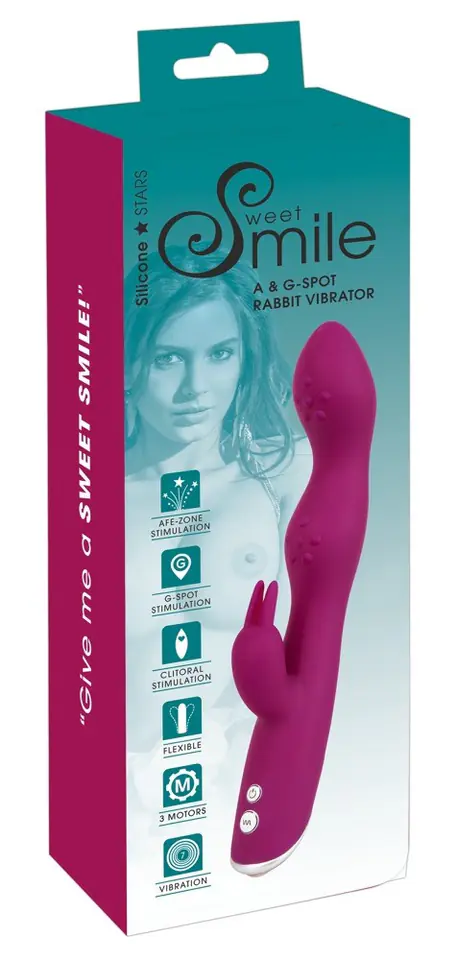 Intensive hotspot massager! A flexible vibrator with a clitoral stimulator and a puknt stimulator A and G. While the flexible shaft stimulates the AFE (A-Spot) and G zone in the vagina with clear protrusions on the shaft, the clitoris is simultaneously pampered with tingling vibrations. Targeted stimulation of the AFE zone can, as with the G-spot, allow multiple orgasms and increase the production of natural excitement moisture. 3 powerful motors provide 7 vibration modes for varied enjoyment. The vibrator is made of pleasant to the touch silicone.