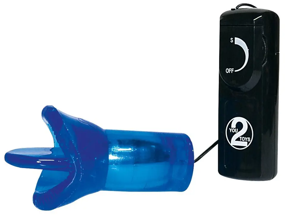 Elastic, gel, blue material. Vibration adjustment. Dimensions: 11 cm.
