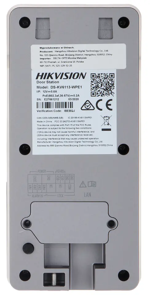 Hikvision DS-KIS603-P - IP PoE intercom set 2nd generation. The set consists of Hikvision DS-KV6113-WPE1 door station and Hikvision DS-KH6320-WTE1 indoor station. Both stations, which can restrict PoE (Power over Ethernet), can be downloaded to reduce the number of connections needed to connect the set.