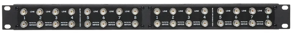 REMARK! Before installation, please review the following recommendations: Connection work cannot be done during a thunderstorm. OPV-16/RACK should be connected to a good grounding installation. The limiter should be placed as close as possible to the protected deviceOPV-16/RACK is not symmetrical and the protected device should be connected to the BNC output sockets \"PROTECTED DEVICE\". BNC sockets \"LINE\" connect to the transmission line on which overvoltage may occur