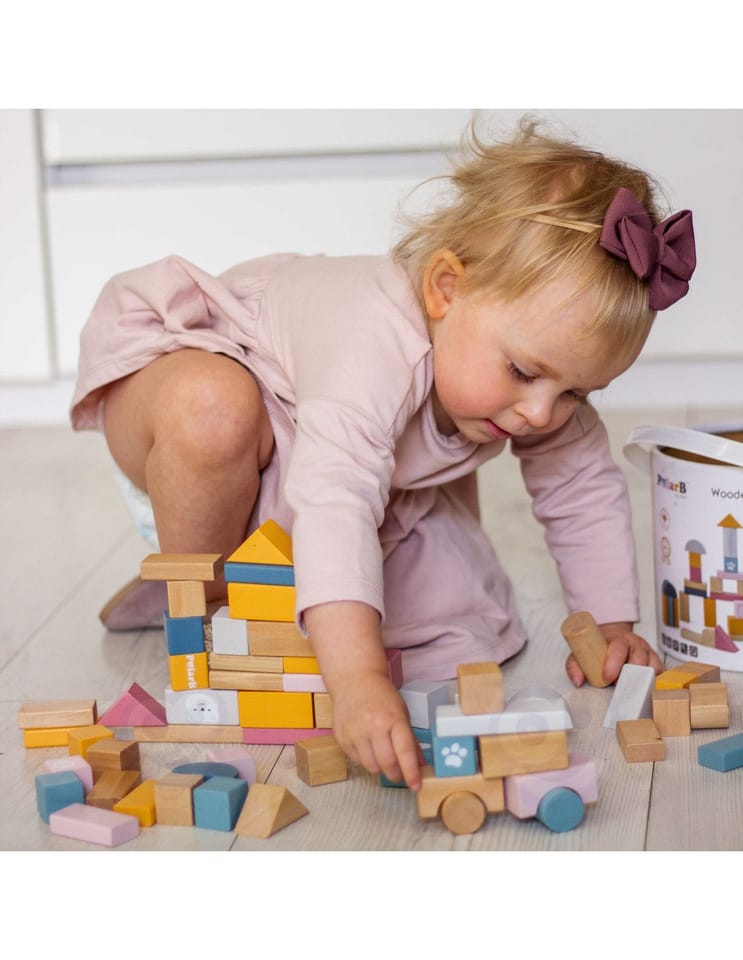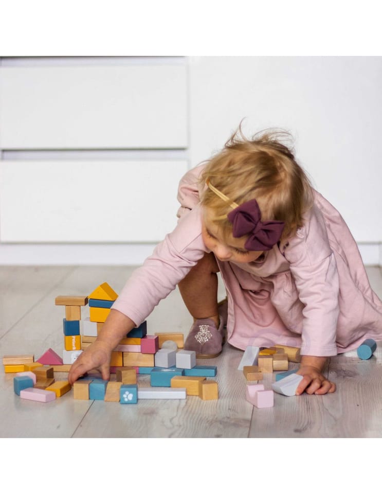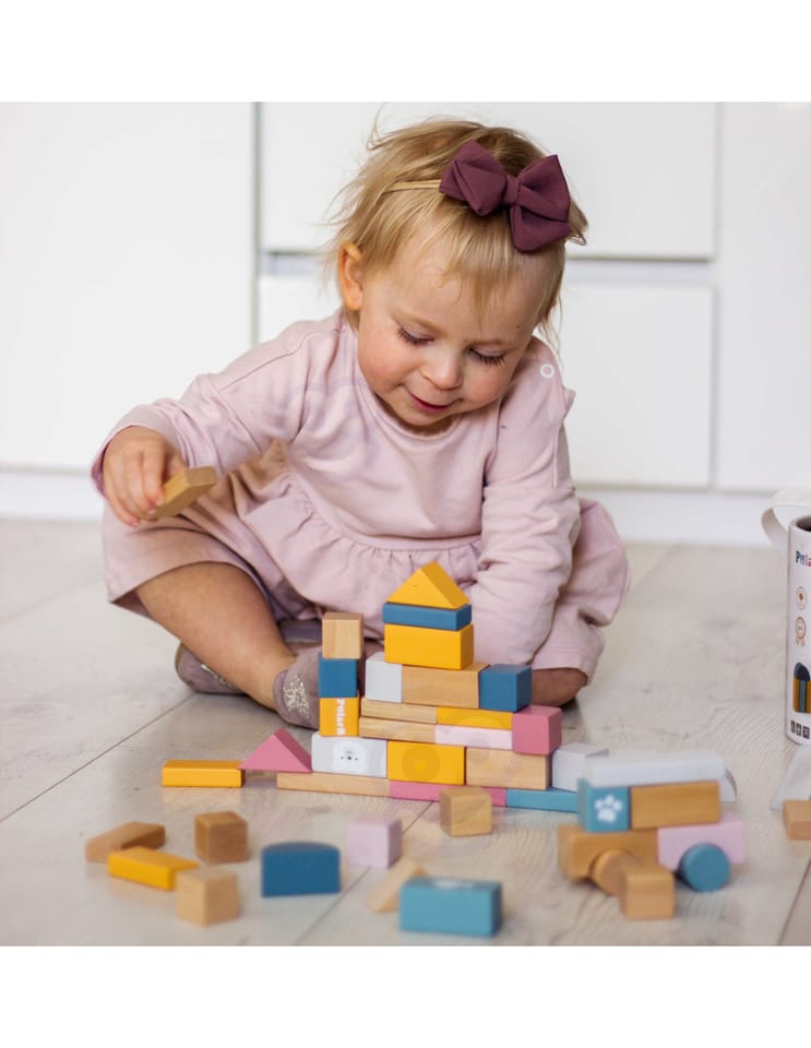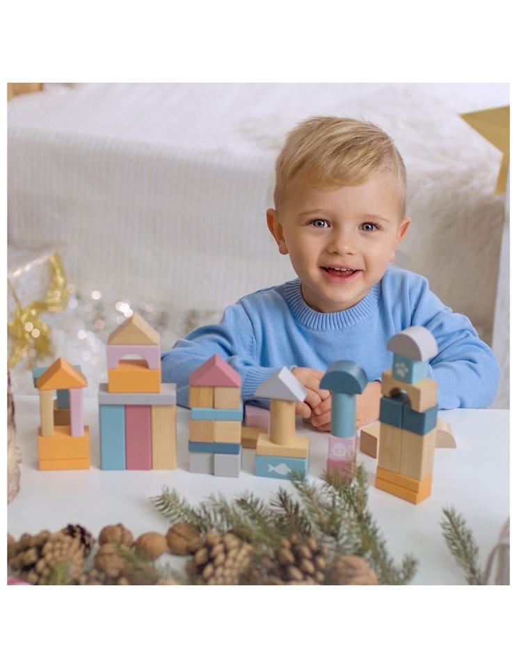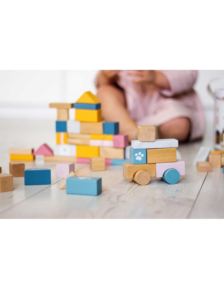 Wooden blocks from Viga are one of the most wonderful toys that will last a long time and will provide your child with many years of interesting and creative play. Playing with our blocks, the baby shapes the precision of hand movements, and improves eye-hand coordination. These are qualities that no other toy can replace. The set includes 60 colorful bricks. The variety of shapes allows you to build unique buildings, cities and objects. The blocks are packed in a plastic bucket with a handle, which will make it easy to move them anywhere. The set also includes a booklet that will inspire your child to play creatively.