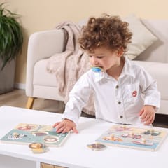 The pieces of the puzzle are equipped with wooden pegs, thanks to which the toddler can easily grasp the puzzle in the handle and fit it in the right place on the wooden stand. This is one of the best ways to practice concentration and hand-eye coordination.