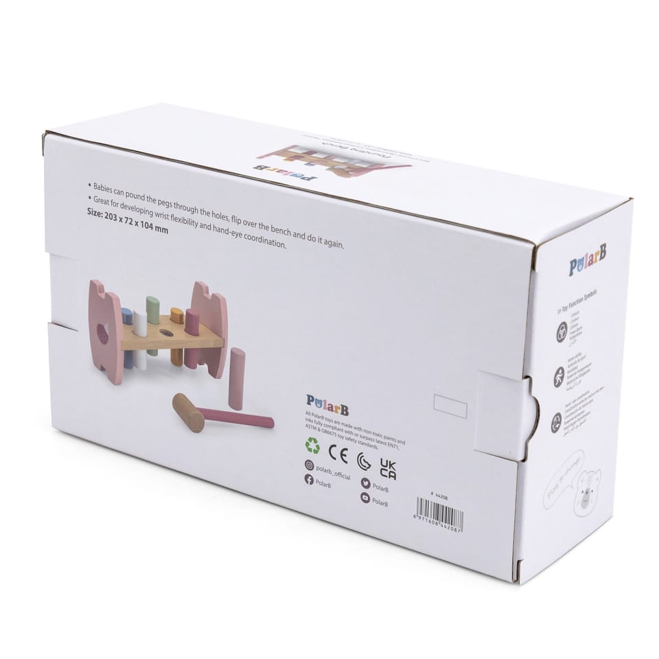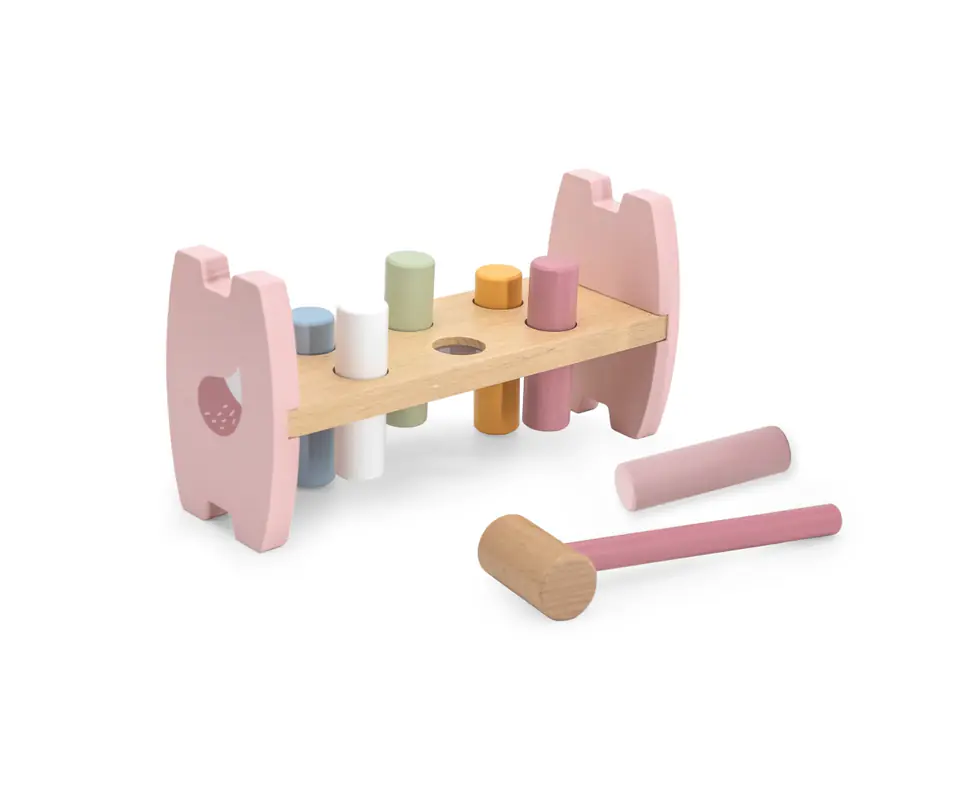 Viga 44208 PolarB Przebijanka LisKolorowy przebijak od firmy Viga to produkt, który pokocha każde dziecko. Delikatne pastelowe kolory oraz wygodny w uchwyceniu młotek zachęcą każdego malucha do zabawy. Przy okazji przebijanka poprawi koordynację wzrokowo-ruchową jak i pomoże ćwiczyć sprawność rączek oraz rozwija wyobraźnię i uczy kreatywnego myślenia. Zadaniem dziecka jest wbić wszystkie kołki w otwory, aby przeszły na drugą stronę ramy. Czynność można powtarzać poprzez obracanie zabawki.Zestaw zawiera: