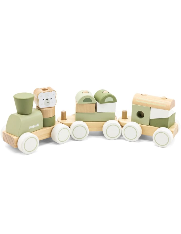 Przedstawiamy drewnianą zabawkę marki VIGA – kolejka z klockami z serii PolarB.Zielono-biała kolejka z wagonikami do ciągania jest propozycją dla aktywnych maluszków. Ta klasyczna zabawka zapewnia dzieciom godziny kreatywnej zabawy i daje mnóstwo radości, nie tylko podczas budowania lokomotywy i wagoników. Rozwija koordynację ręka-oko, umiejętności motoryczne, manualne i zręczność palców, wyobraźnię przestrzenną i wyobraźnię planowania i budowania. Zestaw zawiera czternaście klocków w najmodniejszych w tym sezonie barwach, które można łączyć ze sobą poprzez nałożenie elementów na drewniane kołeczki znajdujące się na trzech toczących się podstawach. Dzieci mogą wymyślać wszelkiego rodzaju kombinacje kształtów i kolorów.Całość wykonana została z drewna bukowego i pomalowana nietoksycznymi farbami o stonowanych barwach, które przyciągną wzrok oraz zachęcą do zabawy dając jednocześnie mnóstwo radości. Farby są w 100% bezpieczne, spełniają normy bezpieczeństwa EN71 i ASTM.Zestaw jest estetycznie zapakowany w kolorowe kartonowe pudełko, w sam raz na prezent.Zabawka przeznaczona dla dzieci powyżej 18. miesiąca życia. Cała seria zabawek PolarB została stworzona przez firmę VIGA aby sprostać oczekiwaniom rodziców i dzieci w doskonaleniu procesu ich rozwoju poprzez zabawę.DANE TECHNICZNE: Wymiar produktu: Dł. 330mm x wys. 95mm x szer. 73mm Wymiary opakowania: Dł. 375mm x wys. 125mm x szer. 80mm Waga: 0,7kg Opisy