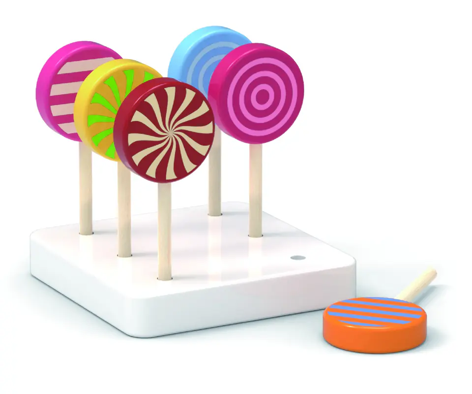 Lizakowy zestaw od firmy Viga to idealny prezent, który ucieszy każde dziecko. Przyda się do odgrywania scenek z cukierni, kawiarni czy sklepu jak również jako uzupełnienie dziecięcej kuchni. Lizaki są kolorowe z różnymi wzorami i można je ustawić na specjalnej podstawce z 6 otworami.Zabawka pomoże rozwinąć u dziecka logiczne myślenie, poznawanie kolorów i kształtów oraz zdolności manualne. Całość wykonana została z drewna bukowego i pomalowana nietoksycznymi farbami w barwy, które zadowolą każdego użytkownika i dadzą mnóstwo radości z zabawy.Dzięki estetycznemu opakowaniu zabawka jest idealna na prezent!Naszym priorytetem jest bezpieczeństwo dzieci oraz najwyższa jakość zabawek, dbamy zatem o to, aby farby którymi malujemy nasze zabawki nie były toksyczne i spełniały normy bezpieczeństwa (EN71 i ASTM).Zabawka przeznaczona dla dzieci powyżej 3 roku życia.Wymiar produktu:Wysokość lizaka: 105 mmSzerokość lizaka: 45 mmWymiary podstawy: 115 x 115 x 20 mmWaga netto: 0,43 kgWymiary opakowania:Dł. 160 mm x wys. 123 mm x szer. 140 mmWaga brutto: 0,48 kgOpisy