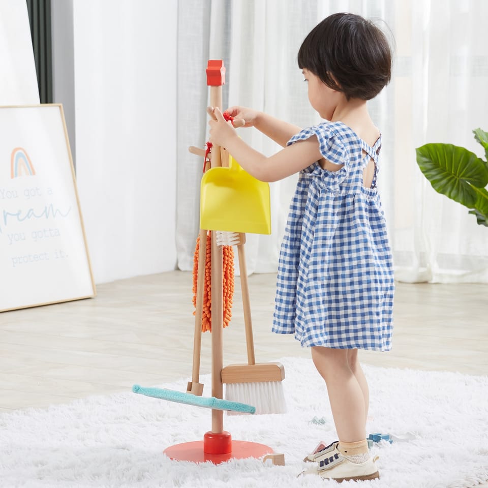 - Wooden neat and handy hanger to hang all cleaning products.