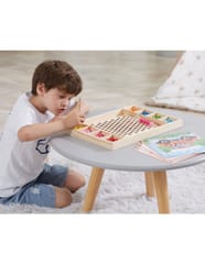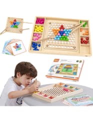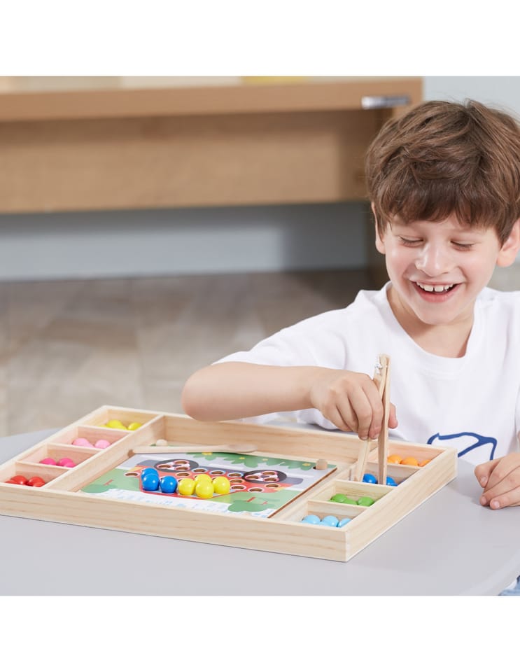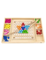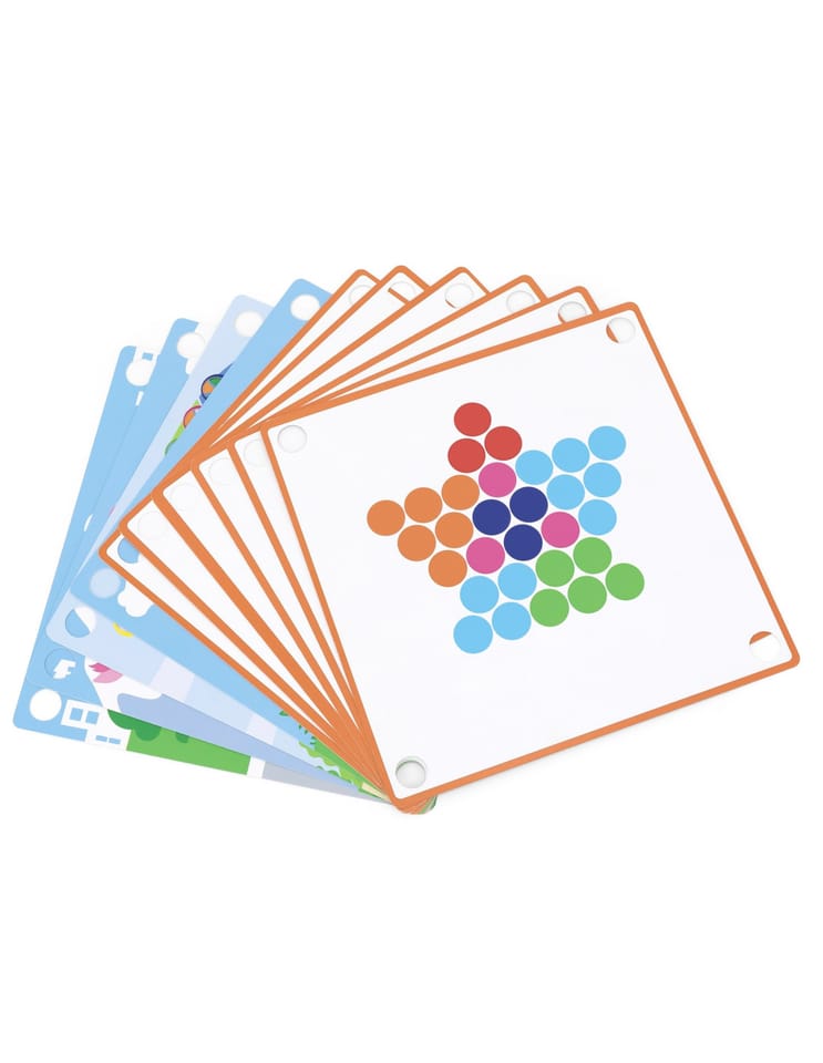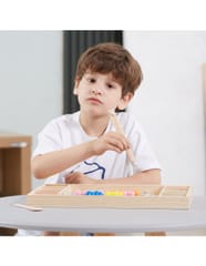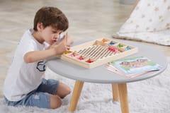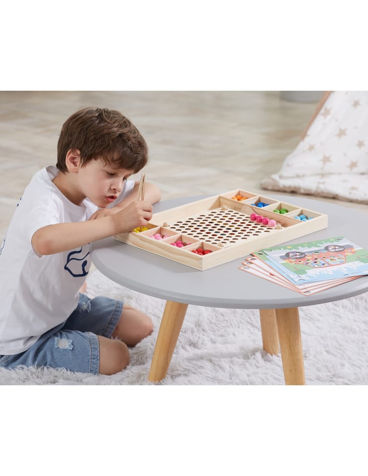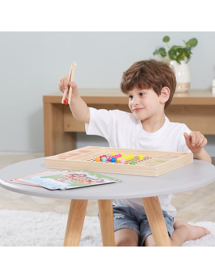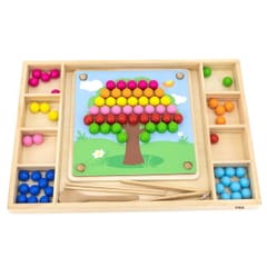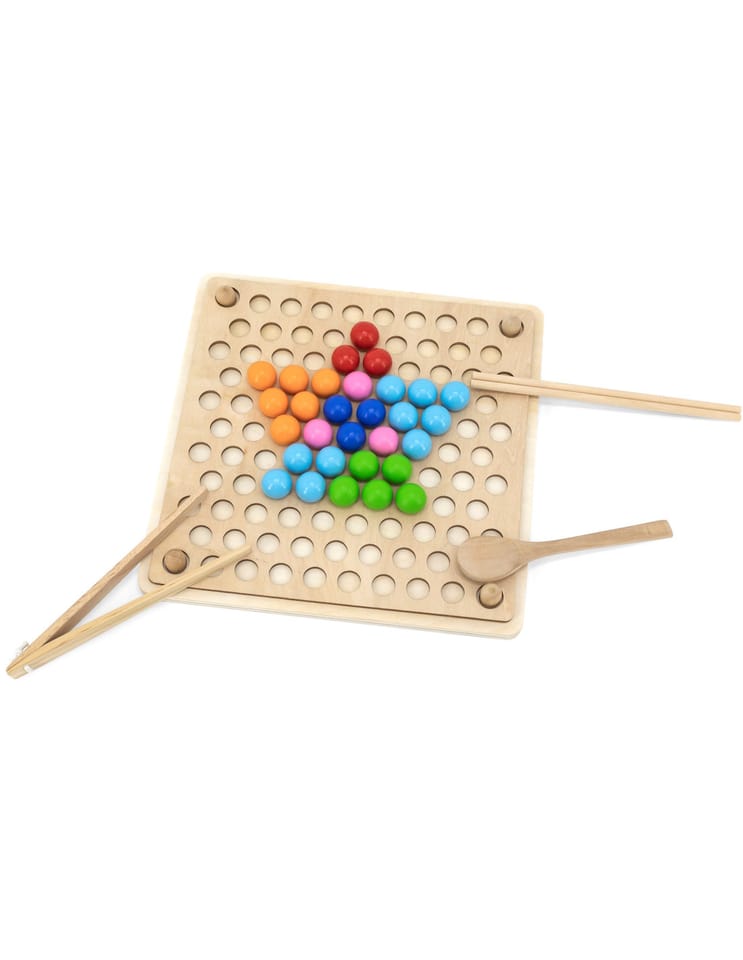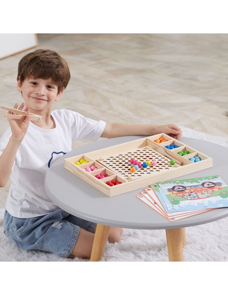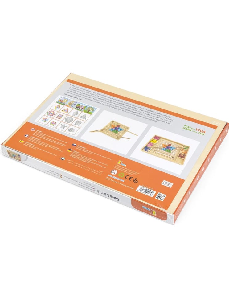 Przedstawiamy drewnianą zabawkę marki VIGA – kreatywną grę/układankę.Zabawka rozwija umiejętności koordynacji ręka-oko, koncentracji, pamięci i spostrzegawczości u dzieci. Zapewnia wiele radości i rozrywki.Składa się z drewnianego pudełka/bazy z przegródkami, kolorowych kulek, 8 plansz/obrazków z otworami oraz zestawu przyborów (pałeczki, łyżka) do ich układania. Zachęca do eksploracji i odkrywania różnych sposobów dopasowywania elementów. Można tworzyć kulkowe kompozycje zgodnie ze wzorem na kolorowych planszach lub własne pomysły.Całość wykonana została z drewna bukowego i pomalowana nietoksycznymi farbami, które przyciągną wzrok oraz zachęcą do zabawy dając jednocześnie mnóstwo radości. Farby są w 100% bezpieczne, spełniają normy bezpieczeństwa EN71 i ASTM.Gra zapakowana jest w kolorowy karton, w sam raz na prezent.Zabawka przeznaczona dla maluchów powyżej 36. miesiąca życia. Cała seria zabawek VIGA została stworzona, aby sprostać oczekiwaniom rodziców i dzieci w doskonaleniu procesu ich rozwoju poprzez zabawę.Wymiar produktu:Dł. 398mm x wys. 30mm x szer. 269mmWymiary opakowania:Dł. 400mm x wys. 30mm x szer. 277mmWaga brutto: 1,2 kgOpisy