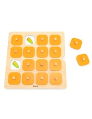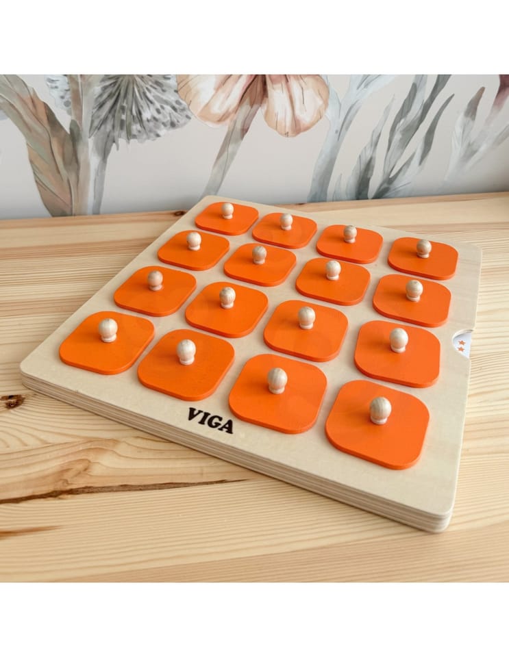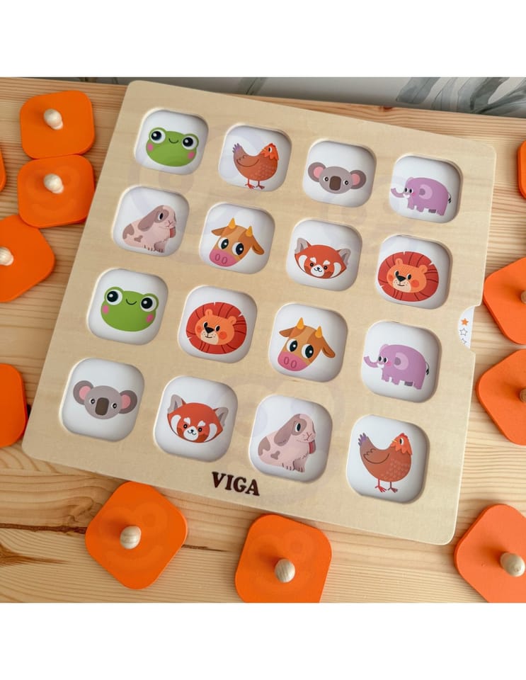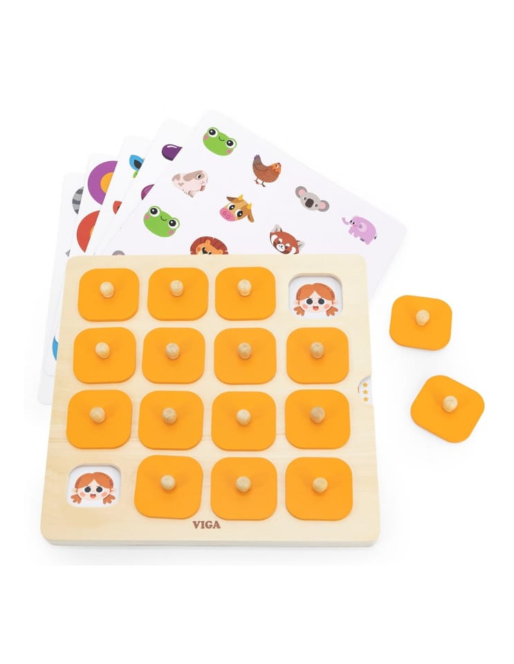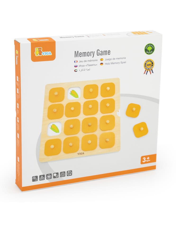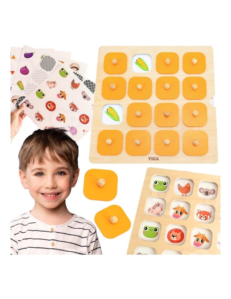 Przedstawiamy drewnianą zabawkę marki VIGA – grę pamięciową Memory.Klasyczna i popularna gra pamięciowa, która rozwija umiejętności koncentracji, pamięci i spostrzegawczości u dzieci. Jest to interaktywna i edukacyjna zabawka, która zapewnia wiele radości podczas rozgrywki.Składa się z drewnianej tarczy/bazy z wyciętymi szesnastoma otworami, zakrywanymi wieczkiem z pinezką. Z boku tarczy wsuwa się jedną z dziesięciu plansz, której obrazki będą widoczne w otworach bazy. Plansze mają różny poziom trudności dostosowane do wieku i umiejętności dzieci.Gra pamięciowa jest nie tylko rozrywką, ale także świetnym sposobem na rozwijanie umiejętności poznawczych i kształtowanie koncentracji u dzieci. Zapewnia interaktywną zabawę, angażującą zarówno pojedynczego gracza, jak i grupę dzieci. Zabawa w Memory jest również doskonałą okazją do budowania więzi między dziećmi oraz rozwijania umiejętności społecznych, takich jak umiejętność czekania na swoją kolej i fair play.Całość wykonana została z drewna bukowego i pomalowana nietoksycznymi farbami, które przyciągną wzrok oraz zachęcą do zabawy dając jednocześnie mnóstwo radości. Farby są w 100% bezpieczne, spełniają normy bezpieczeństwa EN71 i ASTM.Gra zapakowana jest w kolorowy karton, w sam raz na prezent.Zabawka przeznaczona dla maluchów powyżej 36. miesiąca życia. Cała seria zabawek VIGA została stworzona aby sprostać oczekiwaniom rodziców i dzieci w doskonaleniu procesu ich rozwoju poprzez zabawę.DANE TECHNICZNE: Wymiar produktu: dł: 300mm x wys: 37mm x szer: 300mmWymiary opakowania: dł: 310mm x wys: 42mm x szer: 310mm Waga: 0,7kgOpisy
