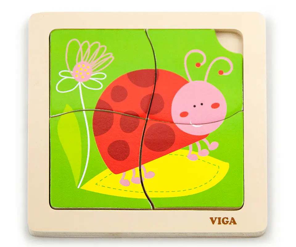 Colorful and very simple Puzzle for Baby from Viga in the shape of a ladybug. The set includes four elements that must be laid out on a wooden stand. When the child correctly adjusts the shapes, a puzzle with a new friend will be created. The picture is in vivid colors that will attract the attention of the bow.