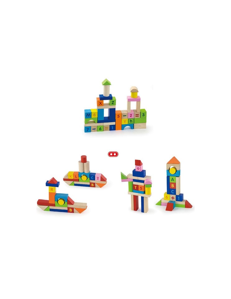Wooden blocks from Viga are one of the most wonderful toys that will serve for a long time and provide your child with many years of interesting and creative fun. Playing with our blocks, the baby shapes the precision of hand movements, and improves eye-hand coordination. These are qualities that no other toy can replace. The set contains 100 colored blocks, which includes letters, numbers and signs of addition, subtraction and multiplication. This is the perfect solution for your child to learn the alphabet and count up to 10 through play. The variety of shapes allows you to build unique buildings, cities and objects. The blocks are packed in a plastic bucket with a handle, which will make it easier to move them anywhere. The set also includes a booklet that will inspire the child to play creatively.