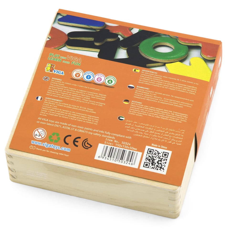 The magnetic letters are packed in an aesthetic, wooden box with a transparent acrylic glass which makes it easy to store and is perfect for a gift.
