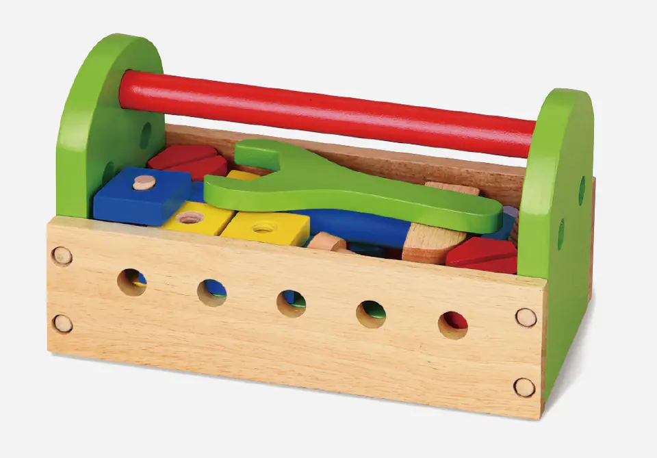 The set includes the necessary DIY tools such as: screwdriver, hammer, flat wrench, screws. In the box there are holes into which you can screw screws or drive nails. This colorful wooden toy is also a sensational educational toy. The set is extremely handy and therefore the size has been adapted to the small hands of children.