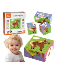 Puzzle cubes with pictures of animals living on the farm from Viga are the perfect toy that every child will enjoy. Puzzle works well as an aid in the development of motor skills in a toddler, and hand-eye coordination. The number of possible combinations guarantees fun, and additionally teach the child to match patterns. It is the perfect gift for those who start their adventure with puzzles. The set consists of 4 wooden blocks.
