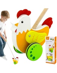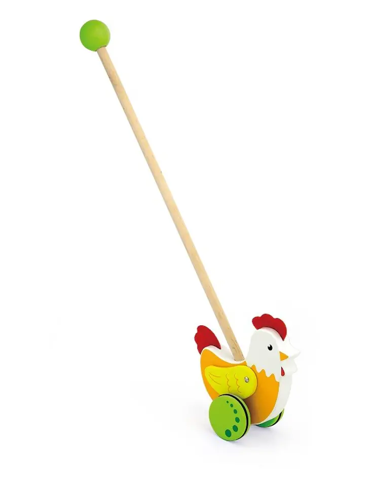 The pusher with a tap on a pole from Viga is designed for children who are just learning to take their first steps. A colorful pusher will certainly encourage your baby to improve his walking technique. An ideal toy that will work well during joint walks. Wooden wings are attached to our pusher, which in a funny way imitate its movement. An additional advantage are anti-slip rubbers, which fit on wooden wheels. Thanks to this, they protect the child against slipping and protect our floor.