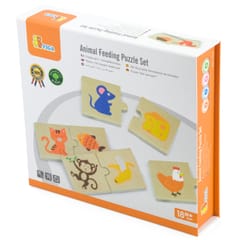 The set consists of 24 wooden elements with images of various animals and food.