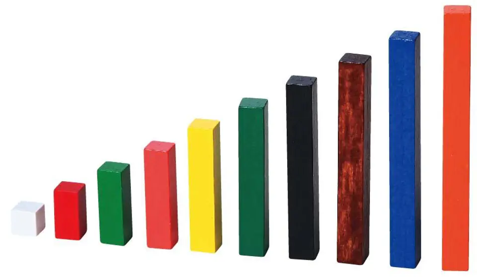 The set contains 308 elements, each stick is a number expressed in color and size. The set includes sticks: white – 1cm; red – 2 cm; green – 3 cm; pink 4 cm; yellow – 5 cm; dark green – 6 cm; black – 7 cm; brown – 8 cm; blue – 9 cm; orange – 10 cm. The whole is packed in an aesthetic box closed with a drawer (acrylic lid).