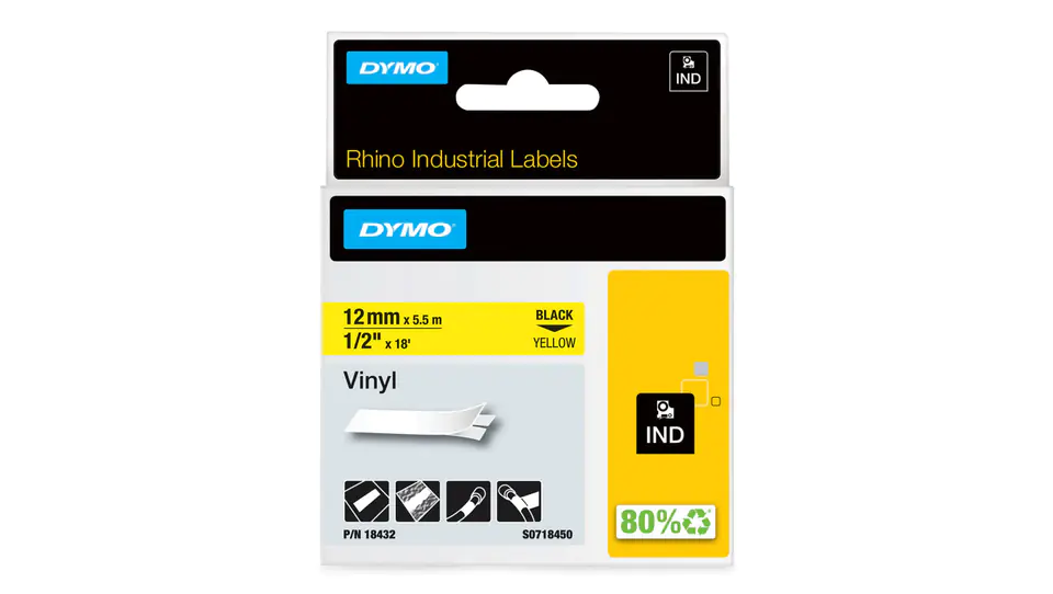 Vinyl tape for printers 12mm x 5,5m black on yellow S0718450 18432