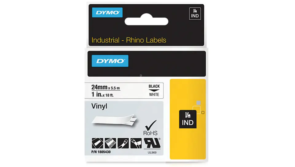 Vinyl tape for printers 24mm x 5,5m black on white 1805430