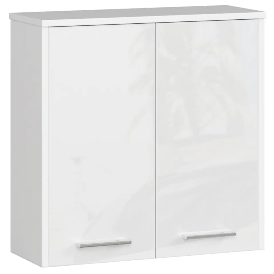 - Cabinet made of high-quality laminated board from kronospan 16mm. The thickness of the board is 16mm- Door fronts made of MDF High gloss acrylic- Inside the upper door there is one shelf- Edges for proper protection covered with ABS edge- Silver door handles- Self-assembly cabinet - Universal cabinet, in the package there are adjustable hangers for hanging, and feet for placing the cabinet on the ground- Instructions in delivery - Warranty 24 months