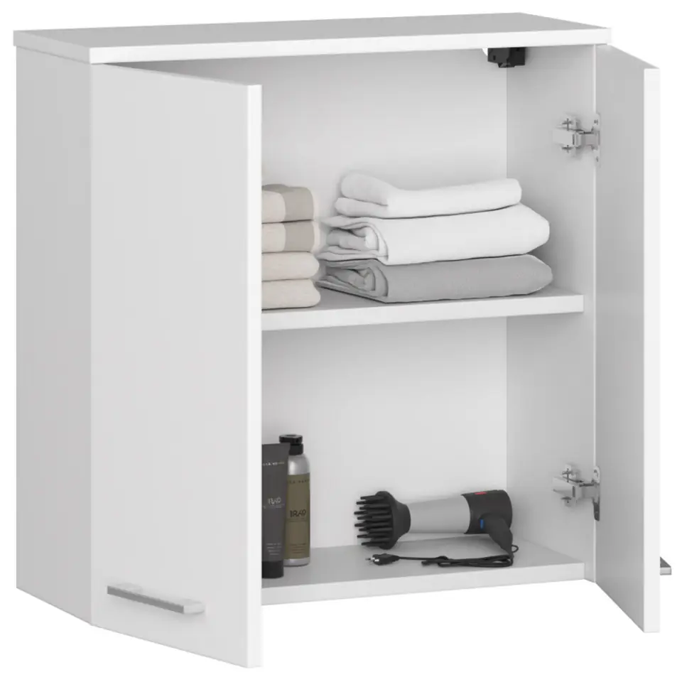 A beautifully and functionally furnished bathroom can be a showcase of any home. That is why it is worth to bet on stylish and capacious furniture, such as a hanging cabinet. The hanging cabinet, which is in our offer, is a product of outstanding quality and exquisitely made. It is a two-door model with elegant opening handles. The cabinet can be hung above the washing machine or above the lower standing post, with which it will create an interesting composition. Both its fronts and body have a beautiful, deep, white color that will brighten up the often dark room that is the bathroom. This color is also so neutral that the cabinet placed in the already arranged space will not disturb its decor. The appropriate depth and width of this piece of furniture ensures that it will not interfere with the use of other bathroom appliances. It was made of a very solid material, which is a laminated board. This ensures that nothing will spoil her impeccable appearance. In addition, the edges have been covered with ABS material. Therefore, even intensive use of the cabinet will not adversely affect its condition.