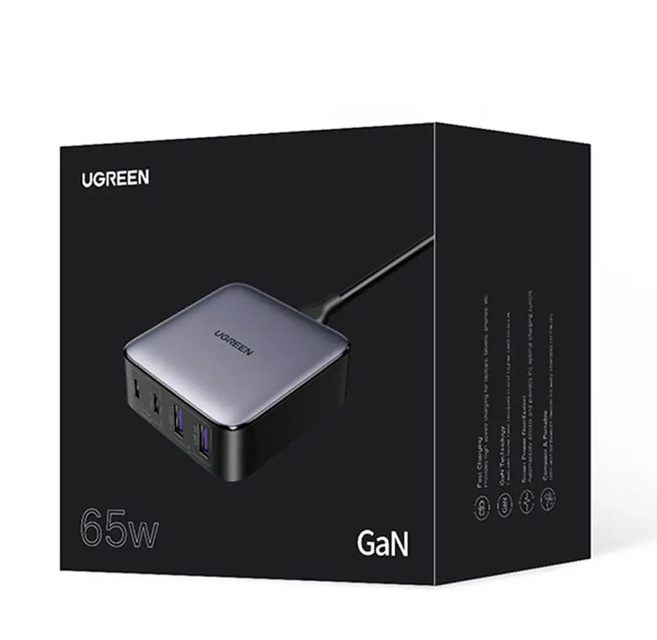 The UGREEN wall charger allows charging with a power of 65 W. It supports many fast charging protocols and allows you to connect up to 4 devices at the same time. A number of security features ensure a high level of security. In addition, the charger is distinguished by its compact size, so you can take it with you almost anywhere.