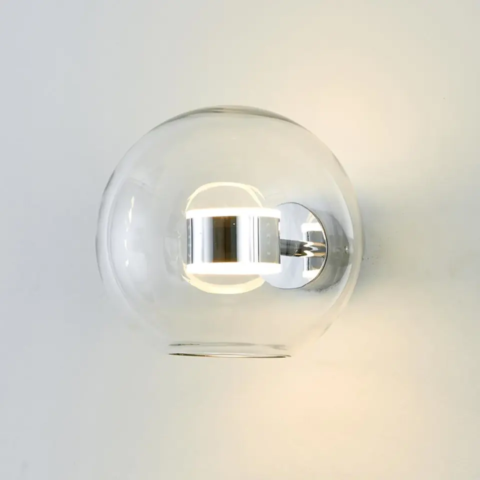 LED wall lamp BUBBLES-1W consists of a glass shade and metal elements in chrome color.