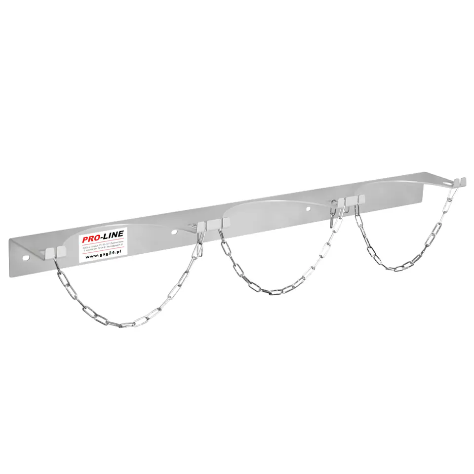 The wall mount for 3 gas cylinders from PRO-LINE is ideal for safe storage of cylinders in an upright position. The holder for attaching the cylinder is equipped with a chain for protection. Easy wall mounting with screws or screws.