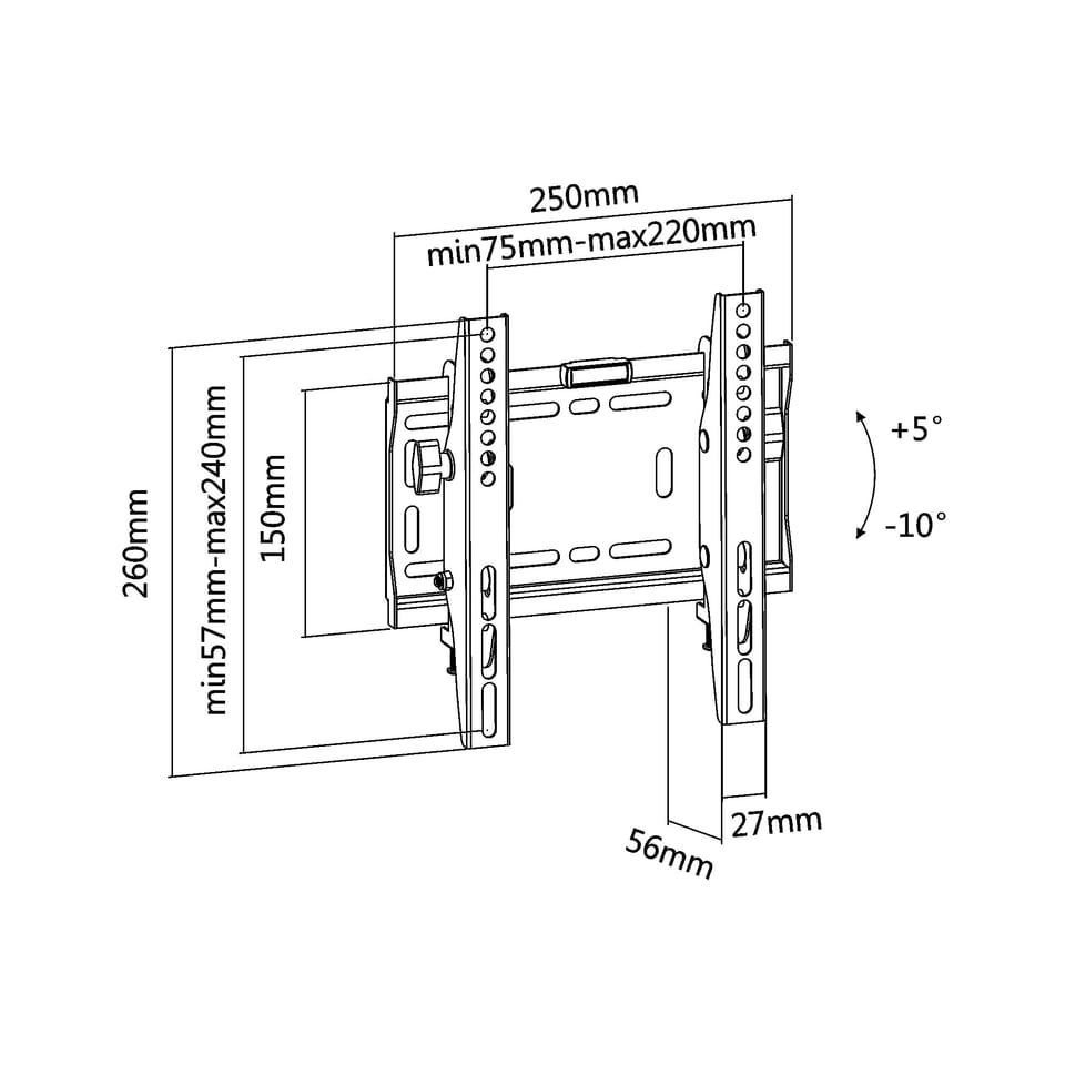 Designed for: LED TVsFor screens: 23" - 42"Distance from the wall: 56 mmMaximum load: 50 kg VESA standard: 200x200, 200x100, 100x100, 75x75 mm
