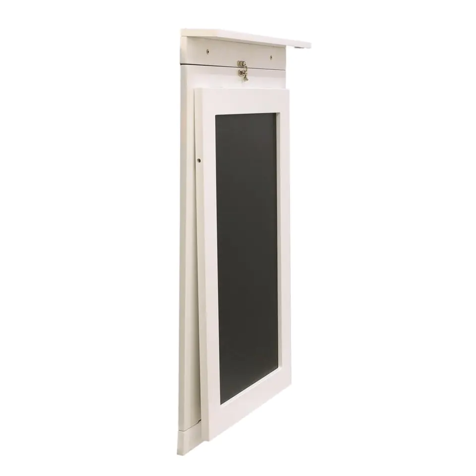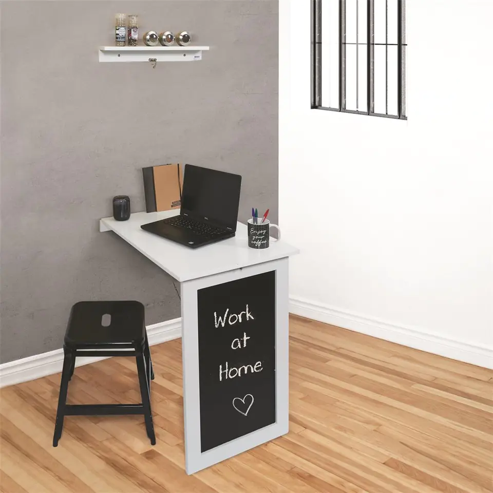 The Ezio folding wall table is all about saving space. Folding table is an ideal choice for small rooms, kitchen in a studio or a narrow hallway. The table top with dimensions of 75x50cm is made of laminated board with a thickness of 15mm resistant to dirt, damage and abrasion. The black side of the table, after folding it, imitates a chalk board, on which we can write an interesting sentence or note for the household members. Table ready to hang with wall plugs (not included). Composition: MDF and metal. Package dimensions: 10,00 x 55,00 x 60,00cm Weight 9kg