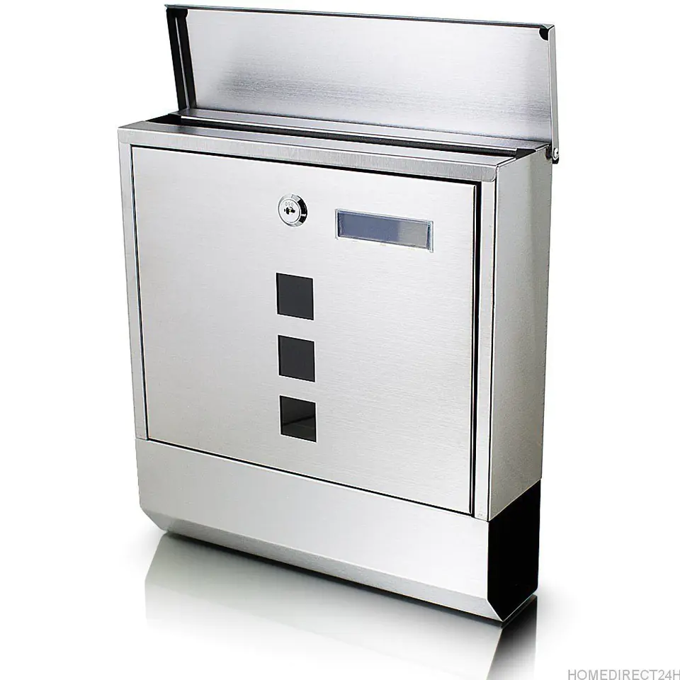 Robust and modern stainless steel letterbox. Entirely made of stainless steel extremely resistant to weather conditions, equipped with space for leaflets and advertising leaflets. It ensures full security of correspondence. The kit includes mounting elements and two keys.