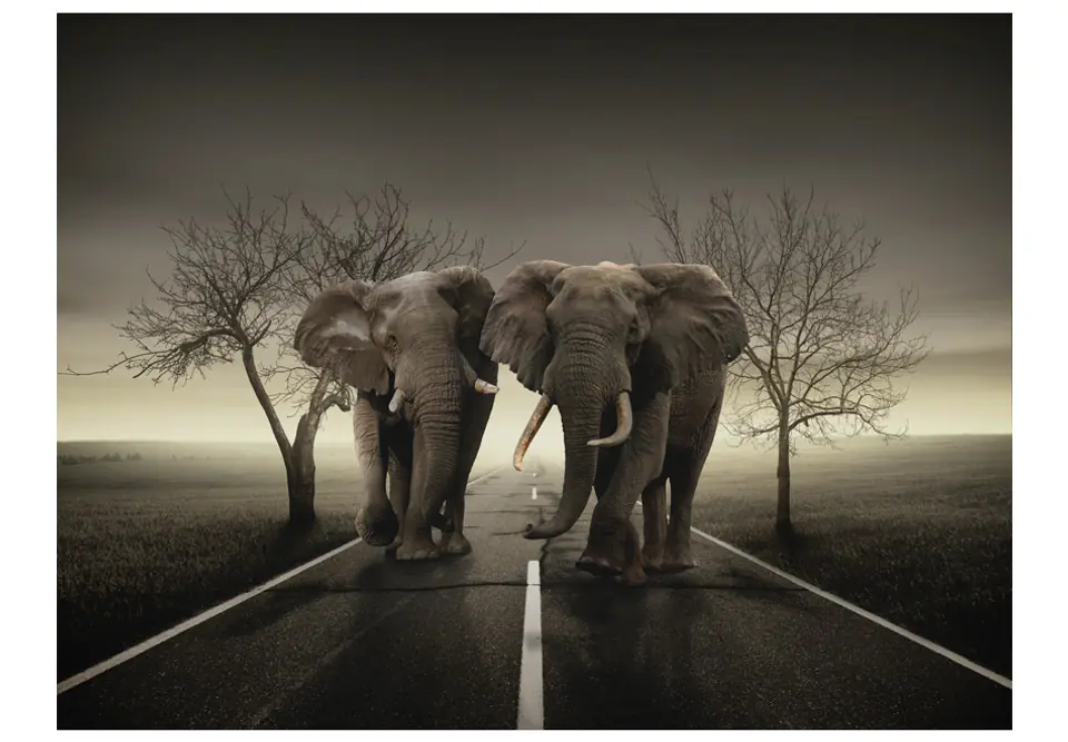 Durable, water and scratch-resistant fleece wall mural "Wall mural - City of elephants" to stick on the wall. The wall mural "Wall mural - City of Elephants" with an inspiring motif will be an effective decoration of any room. Fleece wallpapers are mounted on glue. They can be installed in any room, even a bathroom or kitchen. Fleece wallpaper, semi-matte coating. Fleece hides minor imperfections of the wall. It creates a warming insulating layer and allows the walls to breathe. Waterproof printing is very durable.