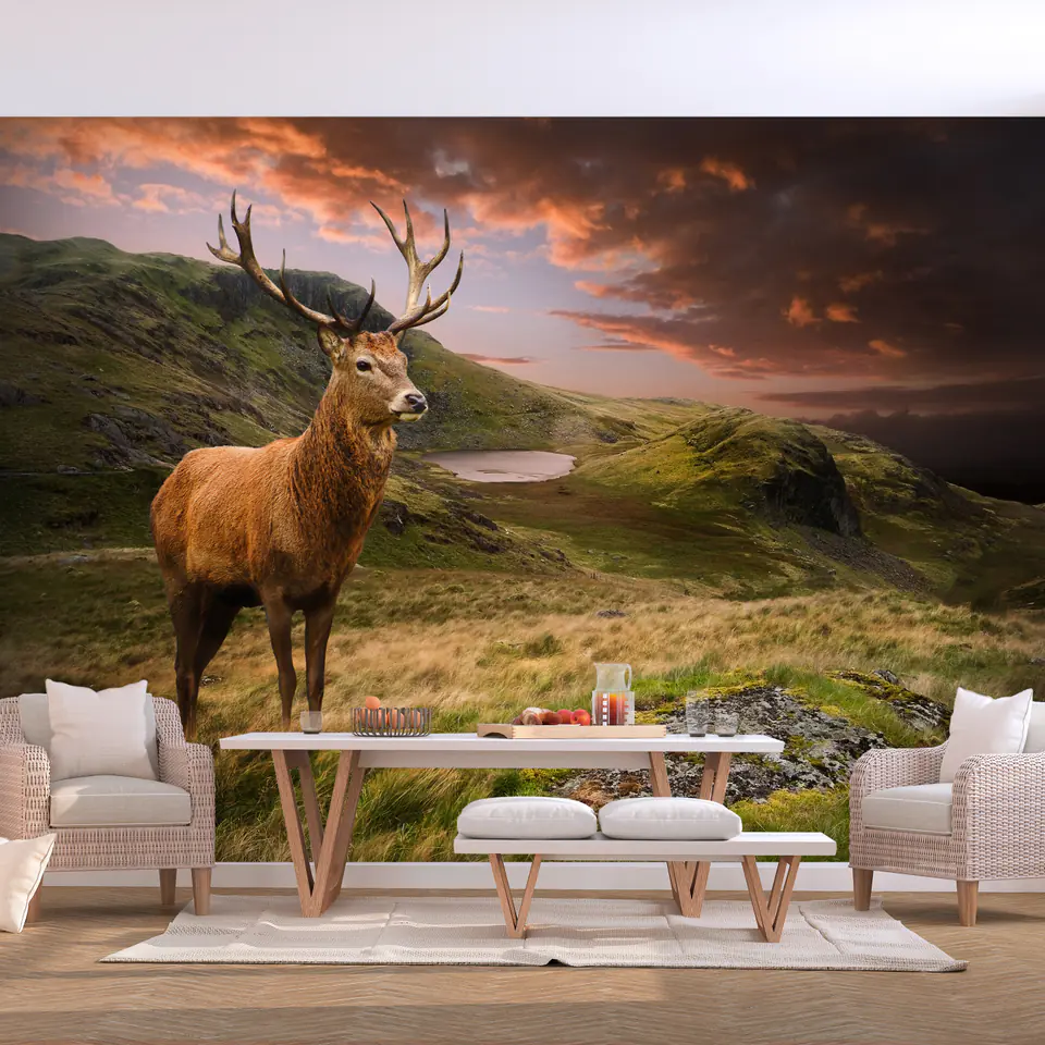 Durable, resistant to water and scratches non-woven wall mural "Wall mural - Deer on the hill" to be glued to the wall. Wall mural "Wall mural - Deer on the Hill" with an inspiring motif will be a spectacular decoration of any room. Non-woven wallpapers are mounted on glue. They can be installed in any room, even a bathroom or kitchen. Non-woven wallpaper, semi-matt coating. Non-woven fabric hides minor imperfections of the wall. It creates a warming insulating layer and allows the walls to breathe. Waterproof printing is very durable.