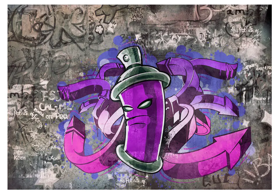 Durable, resistant to water and scratches non-woven wall mural "Wall mural - Graffiti spray can" to stick on the wall. Wall mural "Wall mural - Graffiti spray can" with an inspiring motif will be a spectacular decoration of any room. Non-woven wallpapers are mounted on glue. They can be installed in any room, even a bathroom or kitchen. Non-woven wallpaper, semi-matt coating. Non-woven fabric hides minor imperfections of the wall. It creates a warming insulating layer and allows the walls to breathe. Waterproof printing is very durable.