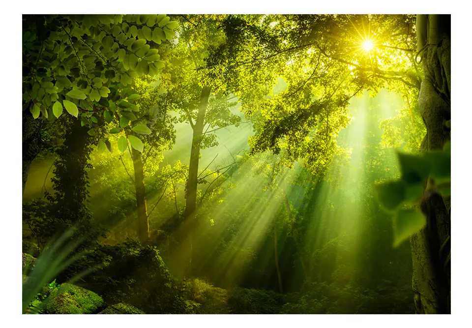 Durable, resistant to water and scratches non-woven wall mural "Wall mural - In the mysterious forest" to be glued to the wall. Wall mural "Wall mural - In a mysterious forest" with an inspiring motif will be a spectacular decoration of any room. Non-woven wallpapers are mounted on glue. They can be installed in any room, even a bathroom or kitchen. Non-woven wallpaper, semi-matt coating. Non-woven fabric hides minor imperfections of the wall. It creates a warming insulating layer and allows the walls to breathe. Waterproof printing is very durable.