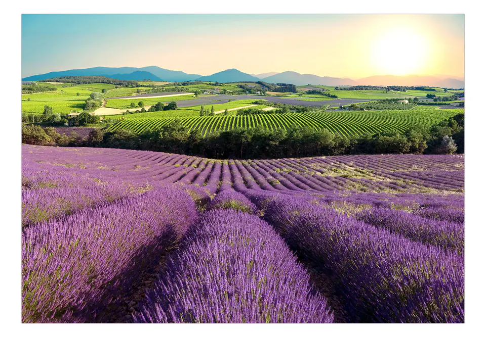 Durable, resistant to water and scratches non-woven wall mural "Wall mural - Lavender Field" to be glued to the wall. Wall mural "Wall mural - Lavender Field" with an inspiring motif will be a spectacular decoration of any room. Non-woven wallpapers are mounted on glue. They can be installed in any room, even a bathroom or kitchen. Non-woven wallpaper, semi-matt coating. Non-woven fabric hides minor imperfections of the wall. It creates a warming insulating layer and allows the walls to breathe. Waterproof printing is very durable.