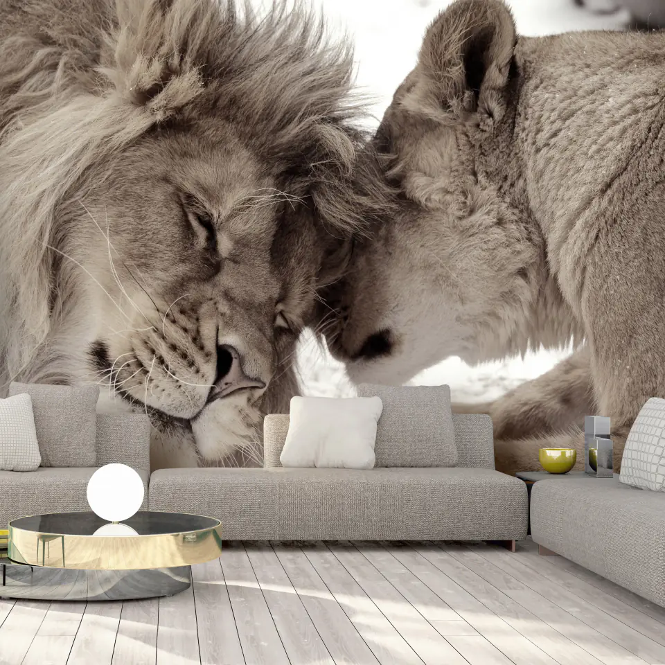 Durable, resistant to water and scratches non-woven wall mural "Wall mural - Lion and lioness" to be glued to the wall. Wall mural "Wall mural - Lion and Lioness" with an inspiring motif will be a spectacular decoration of any room. Non-woven wallpapers are mounted on glue. They can be installed in any room, even a bathroom or kitchen. Non-woven wallpaper, semi-matt coating. Non-woven fabric hides minor imperfections of the wall. It creates a warming insulating layer and allows the walls to breathe. Waterproof printing is very durable.