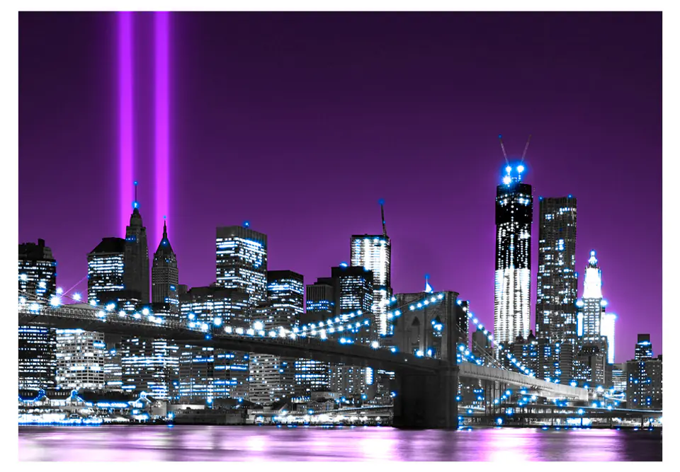 Durable, resistant to water and scratches non-woven wall mural "Wall mural - Luminous Manhattan" to be glued to the wall. Wall mural "Wall mural - Luminous Manhattan" with an inspiring motif will be a spectacular decoration of any room. Non-woven wallpapers are mounted on glue. They can be installed in any room, even a bathroom or kitchen. Non-woven wallpaper, semi-matt coating. Non-woven fabric hides minor imperfections of the wall. It creates a warming insulating layer and allows the walls to breathe. Waterproof printing is very durable.