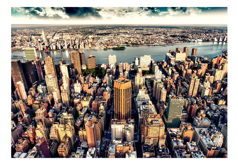 Durable, resistant to water and scratches non-woven wall mural "Wall mural - New York from a bird's eye view" to be glued to the wall. Wall mural "Wall mural - New York from a bird's eye view" with an inspiring motif will be a spectacular decoration of any room. Non-woven wallpapers are mounted on glue. They can be installed in any room, even a bathroom or kitchen. Non-woven wallpaper, semi-matt coating. Non-woven fabric hides minor imperfections of the wall. It creates a warming insulating layer and allows the walls to breathe. Waterproof printing is very durable.