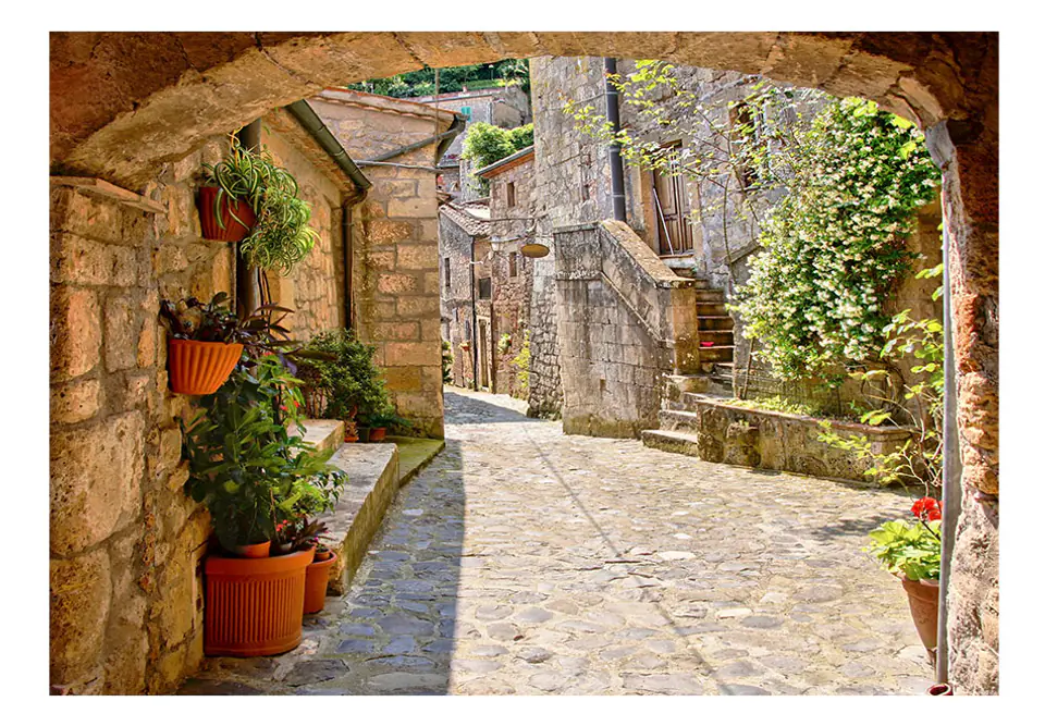 Durable, water and scratch-resistant fleece wall mural "Wall mural - Provincial street in Tuscany" to stick to the wall. The wall mural "Wall mural - Provincial street in Tuscany" with an inspiring motif will be an effective decoration of any room. Fleece wallpapers are mounted on glue. They can be installed in any room, even a bathroom or kitchen. Fleece wallpaper, semi-matte coating. Fleece hides minor imperfections of the wall. It creates a warming insulating layer and allows the walls to breathe. Waterproof printing is very durable.