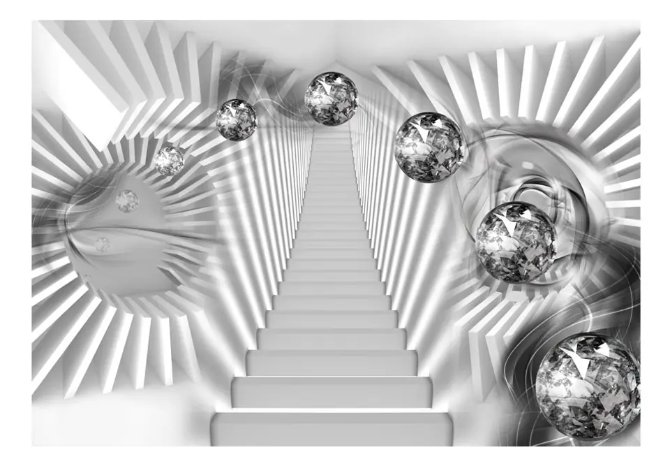Durable, resistant to water and scratches non-woven wall mural "Wall mural - Silver Stairs" to be glued to the wall. Wall mural "Wall mural - Silver Stairs" with an inspiring motif will be a spectacular decoration of any room. Non-woven wallpapers are mounted on glue. They can be installed in any room, even a bathroom or kitchen. Non-woven wallpaper, semi-matt coating. Non-woven fabric hides minor imperfections of the wall. It creates a warming insulating layer and allows the walls to breathe. Waterproof printing is very durable.