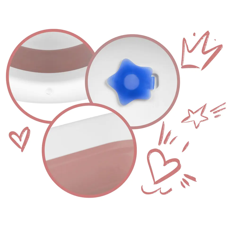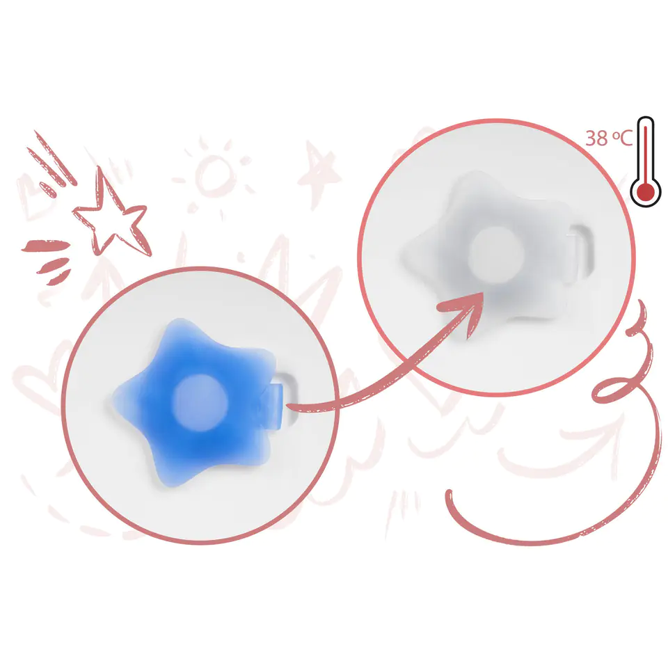 Korek w kształcie gwiazdki zmieni swój kolor z niebieskiego na biały, jeśli temperatura wody przekroczy 38°C.