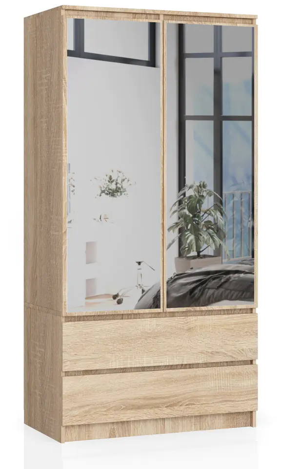 WARDROBE S 90 cm 2 DOORS 2 DRAWERS 2 MIRRORS SONOMA OAK