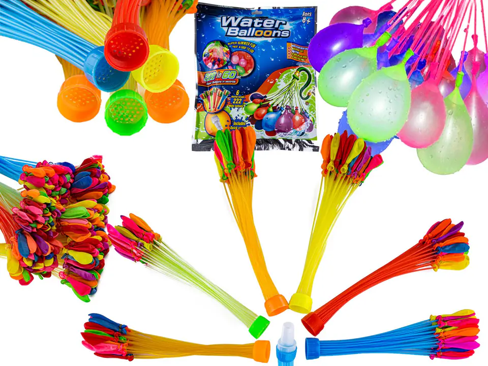 The set includes 222 self-closing balloons and a tap cap, so that filling the balloons will only take a moment. It is enough to fill the balloons with water, and the rubber band on the balloon will tighten itself, closing the balloon tightly.